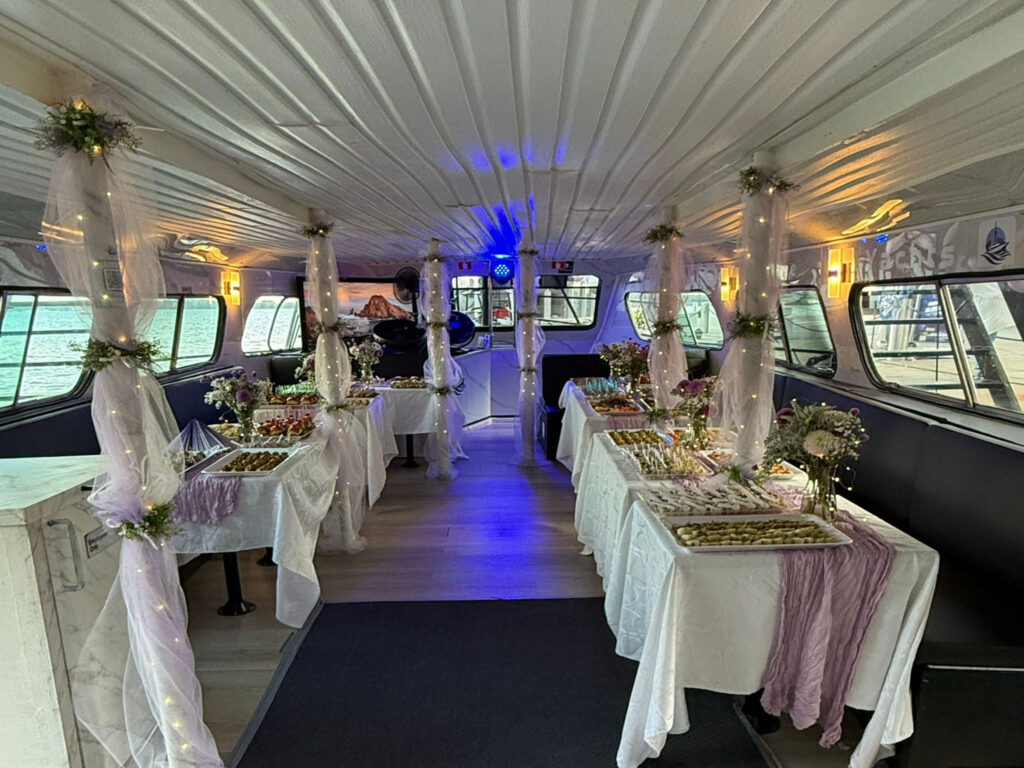 Depending on the occasion and the type of yacht charter package, we offer various amenities. These include the option to decorate the vessel according to your preferences or to have our crew decorate it for you prior to your arrival. Clients also have the opportunity to hire a professional chef to enhance their dining experience on board.